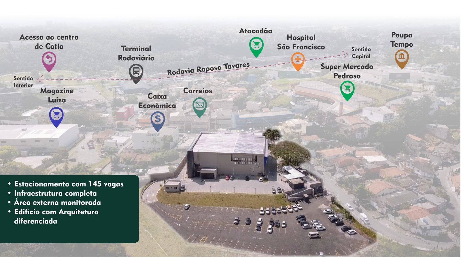 775 m², 6m de pé direito, 18,2 m de fachada para a Avenida Principal.